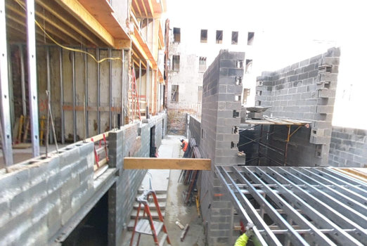 The unique challenge of this LEAD Silver project was to tie the five row homes, having different elevations, into safe, functioning, ADA-compliant classrooms.