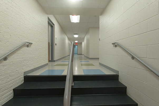 An addition to the back of the buildings was added to create a core for restrooms, administrative offices, elevator and stair tower, along with a multipurpose room and media center.